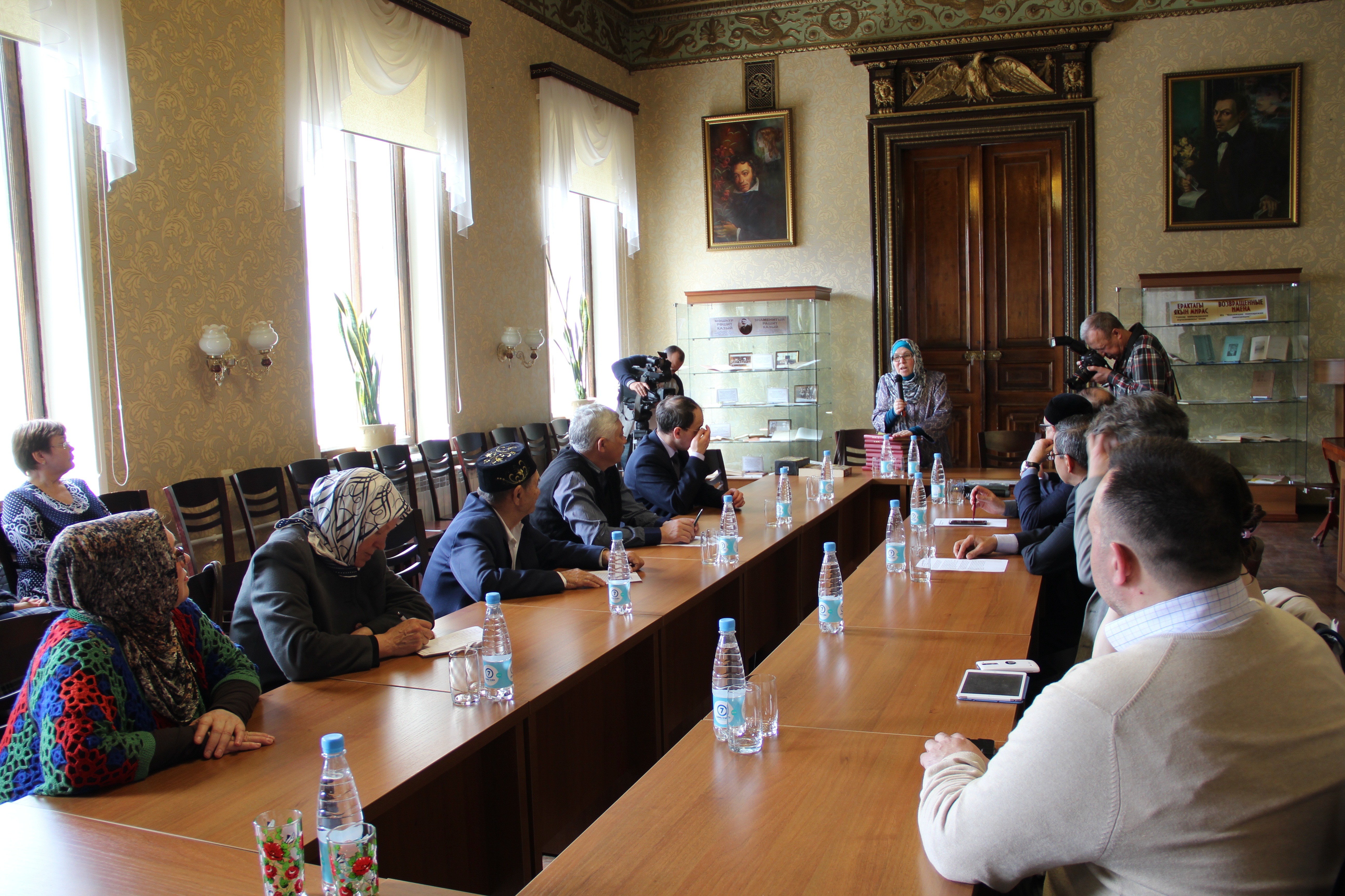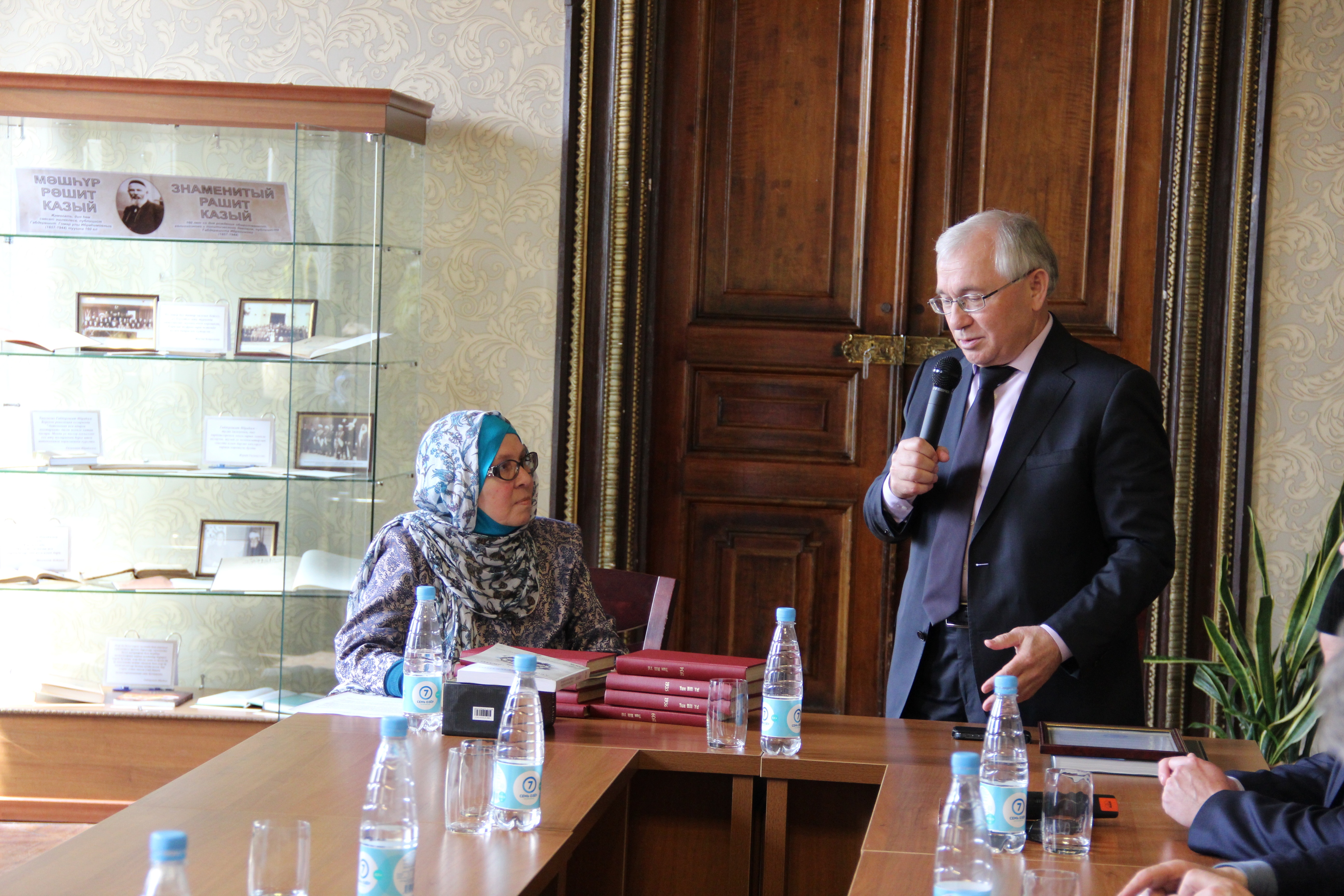 Тантаналы чарада Татарстан Республикасы Дәүләт Советының Мәгариф, мәдәният, фән һәм милли мәсьәләләр комитеты рәисе, Милли китапханәнең Химаячеләр шурасы рәисе Разил Вәлиев, Россия Ислам институты ректоры Рәфыйк Мөхәммәтшин, Татарстан Республикасы Фәннәр академиясенең Татар энциклопедиясе һәм төбәкне өйрәнү иституты директоры, тарихчы галим Искәндәр Гыйләҗев, Татарстан Республикасының Дәүләт архивы директоры Сөләйман Рәхимов, Татарстан Республикасының Архив эше буенча дәүләт комитеты бүлек җитәкчесе Ильяс Мөстәкыймов, галимә, социология белгече Лариса Усманова, Казан университеты галиме Азат Ахунов, журналистлар һәм башка кунаклар катнашты.