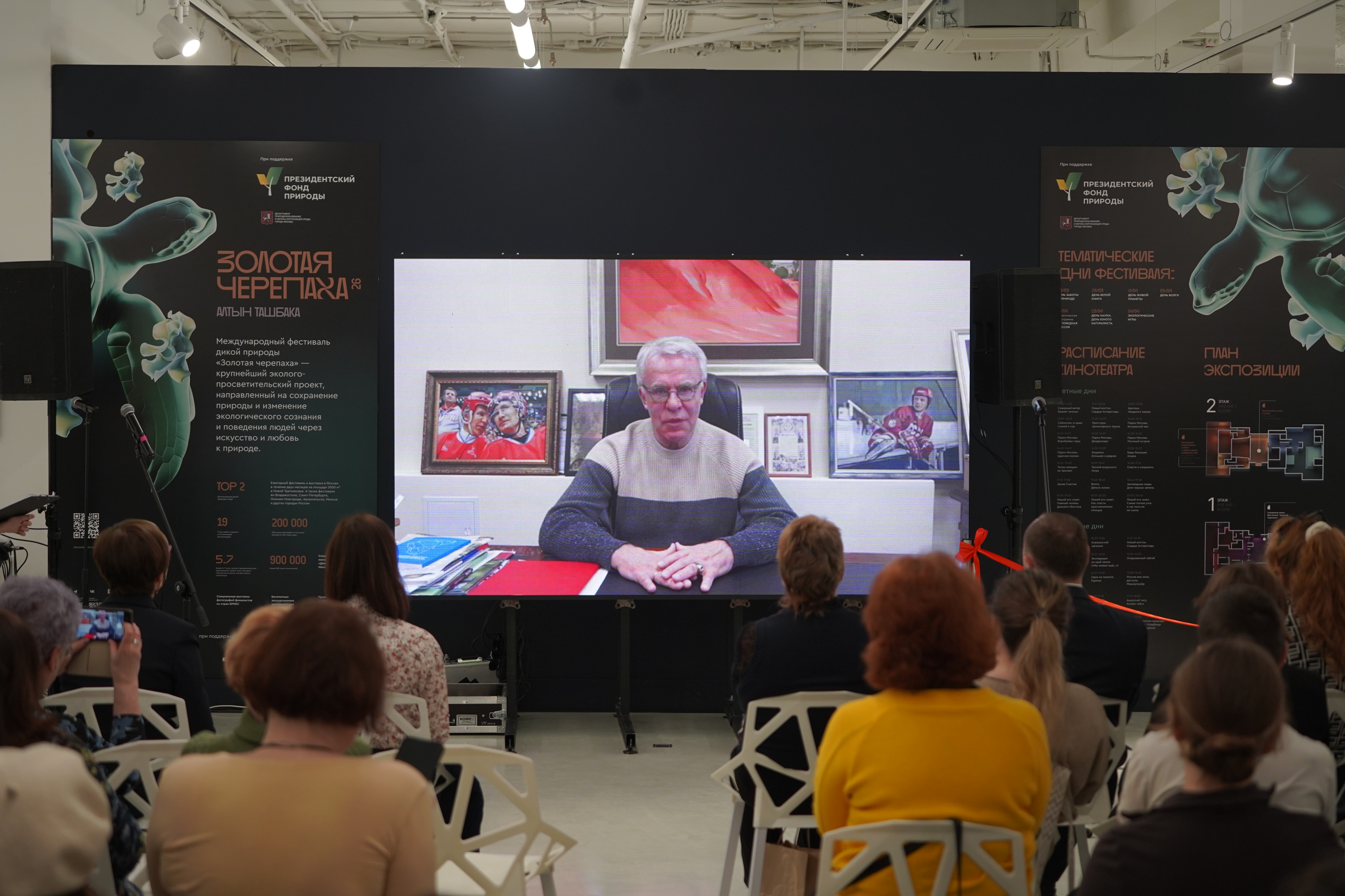 Техническое оснащение: 5 микрофонов, экран, головные радиомикрофоны, приемник синхронного перевода (с наушником), пульт переводчик, напольные экраны обратной проекции, беспроводной презентер, трибуна с дисплеем, дыммашина/хейзер, сценический вентилятор.